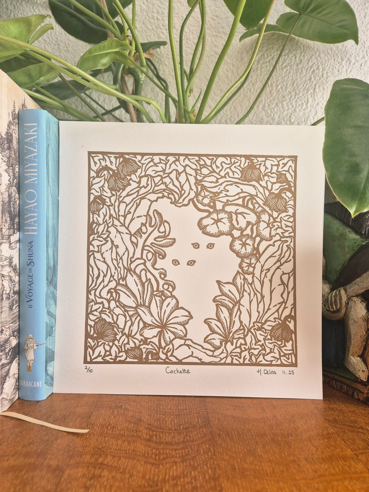 Hand‑carved and printed on a press, each piece is naturally unique; subtle variations in colour, details, and alignment are part of its character. Each print is signed and numbered in graphite on the front. Unless noted above, prints are delivered unframed.